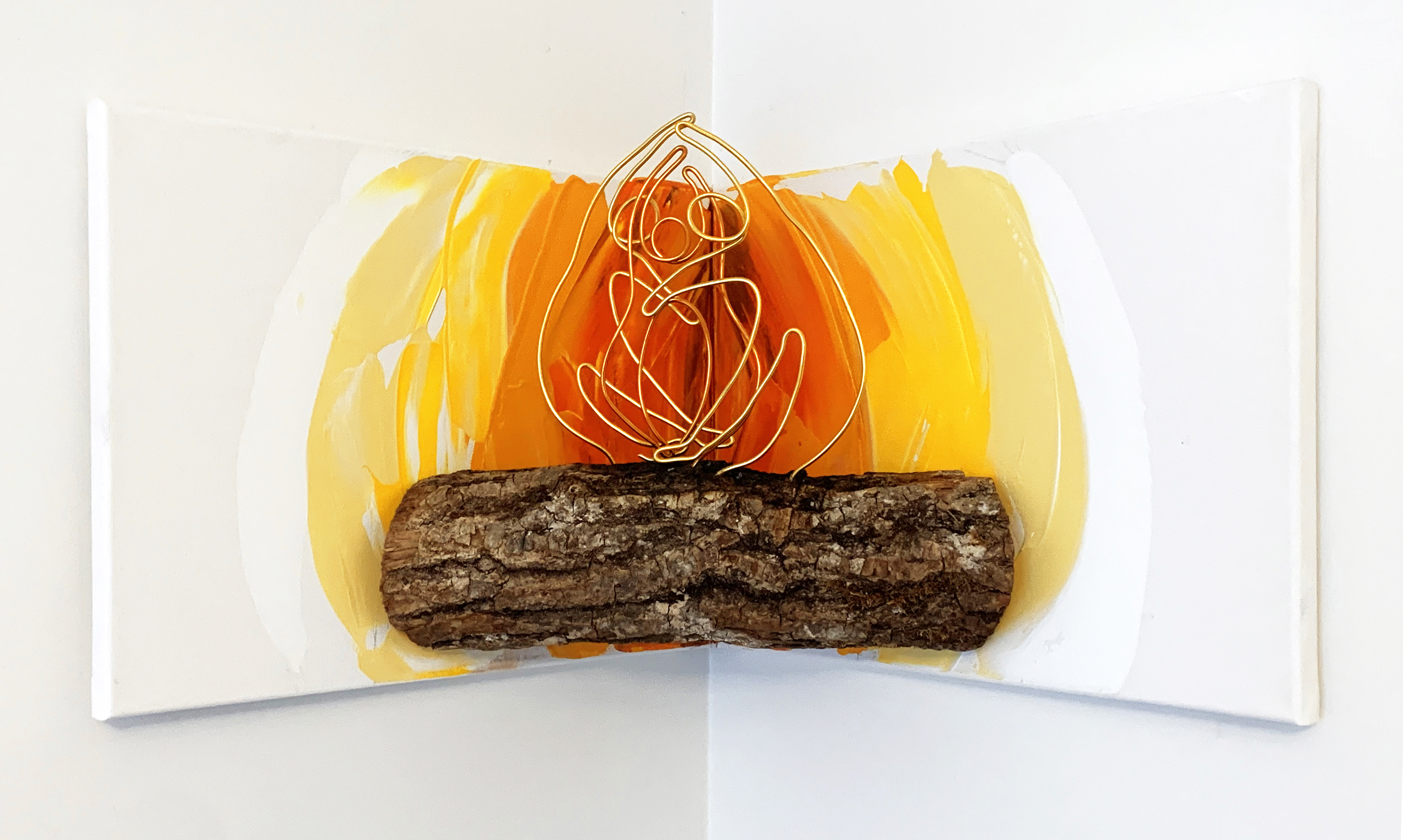 Série "Le coin tableaux..." 2 formats 30 x 40 en angle, bûche, fils d'aluminium, acrylique...