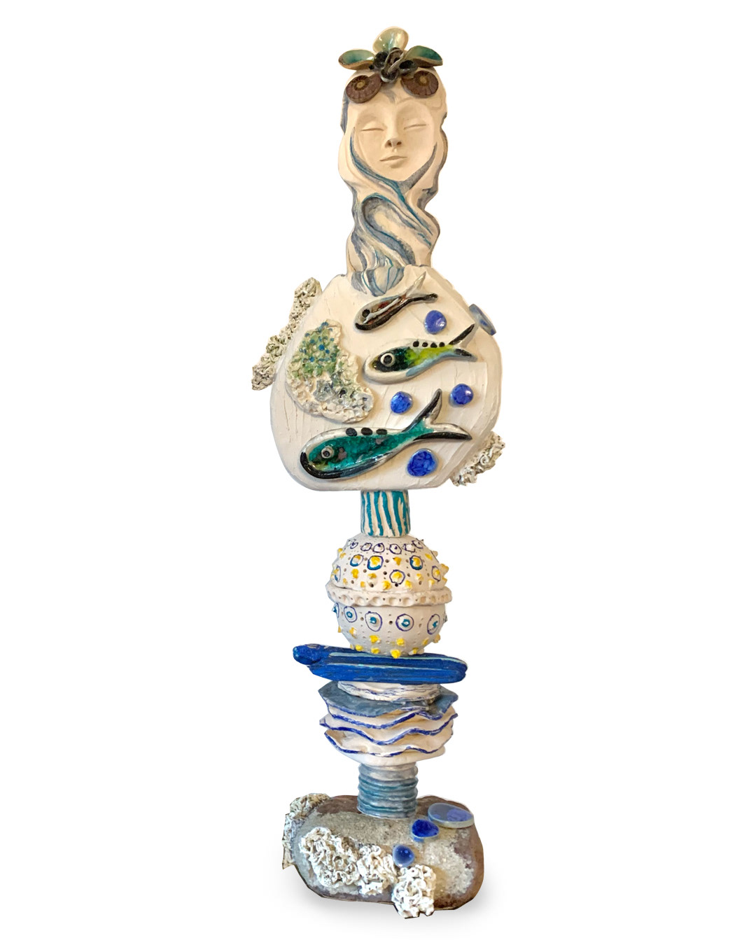 Céramique, verre, coquillages, brique, bois, fossiles... 76 cm H
