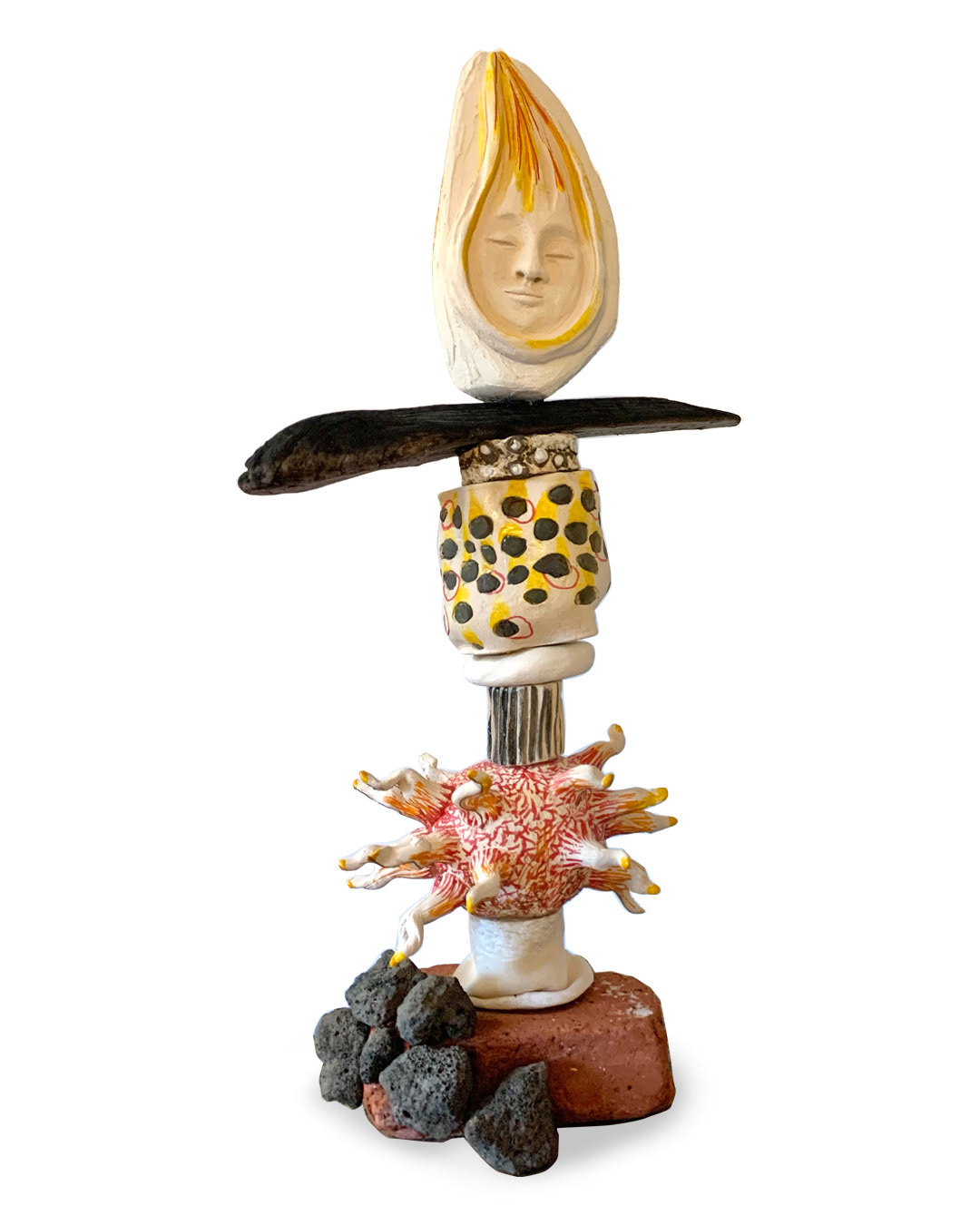 Céramique, verre, pierres volcaniques, brique, bois... 60 cm H